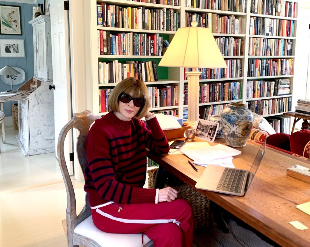 Per il lancio della serie di incontri, Anna Wintour riesce a stravolgere ogni precedente, creando un caso (mediatico) nel caso, grazie ad un’immagine che resterà negli annali della rivista e nel nostro immaginario per sempre: si fa fotografare in casa, alla scrivania disordinata, con indosso un maglione e una tuta da ginnastica. La foto compare sull’account Instagram @Voguemagazine.